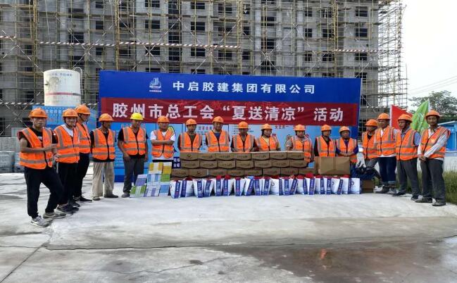 8月19日上午,膠州市委副書記李曉光,膠州市總工會(huì)主席姜鵬,副主席孫殿開等一行到中啟膠建集團(tuán)膠州公司施工建設(shè)的新源上城明珠項(xiàng)目施工現(xiàn)場(chǎng)開展“夏送清涼”慰問活動(dòng),為炎炎夏日依然奮戰(zhàn)在一線的職工們送上工會(huì)的暖心清涼物資和親切的問候。集團(tuán)黨委副書記、工會(huì)主席孫淑云等陪同前往活動(dòng)現(xiàn)場(chǎng)。