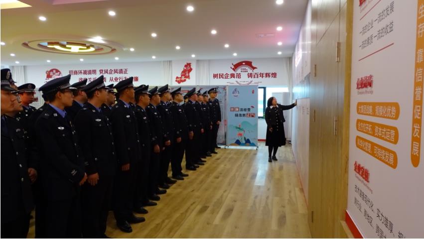 膠州市公安局青年民警輔警代表一行首先來(lái)到集團(tuán)中啟文化展廳,在集團(tuán)工會(huì)主席劉博的引領(lǐng)講解下,他們?cè)敿?xì)了解了集團(tuán)黨建、清廉民企、勞模工匠、職工之家等企業(yè)文化,并參觀了企業(yè)的榮譽(yù)室。