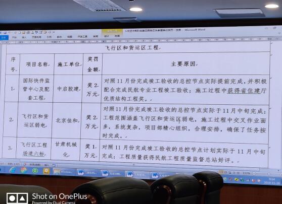 會(huì)議由指揮長宋正敏主持,會(huì)議主要內(nèi)容為公布第四季度施工各方面情況,監(jiān)理單位考核結(jié)果,重點(diǎn)介紹了膠東國際機(jī)場目前的建設(shè)進(jìn)度,強(qiáng)調(diào)了工程的竣工交付時(shí)間節(jié)點(diǎn),工程質(zhì)量安全標(biāo)準(zhǔn)。建筑七公司施工的膠東國際機(jī)場國際快件監(jiān)管中心及配套工程,提前20天計(jì)劃工期,于11月10日,順利完成了竣工驗(yàn)收及民航專業(yè)驗(yàn)收工作。驗(yàn)收工作經(jīng)過了膠東國際機(jī)場工程部、質(zhì)安部等部門的聯(lián)合內(nèi)部驗(yàn)收,質(zhì)量監(jiān)督行政部門的實(shí)地驗(yàn)收,國家民航總局的民航專業(yè)驗(yàn)收,一路走來,受到各方的一致好評,受到建設(shè)單位的高度評價(jià),給予現(xiàn)金獎(jiǎng)勵(lì)2萬元。該工程施工過程中還克服工期緊,任務(wù)重,施工場地緊張等多方不利因素,順利通過了省優(yōu)質(zhì)結(jié)構(gòu)的驗(yàn)收工作。