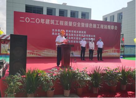 膠州市城鄉(xiāng)建設局副局長高磊、中啟膠建集團有限公司常務副總經(jīng)理馬振聲出席了開幕式,并分別致辭。膠州市質(zhì)監(jiān)站站長張鵬程主持了開幕式。高磊副局長在致辭中寄語全市建筑業(yè)從業(yè)者,通過本次觀摩活動,互相學習,積極創(chuàng)新,進一步提高膠州市建筑業(yè)的整體水平,力爭在三年內(nèi)改變膠州市建筑業(yè)大而不強的現(xiàn)狀,從技術(shù)創(chuàng)新、新材料應用、新管理方式應用、綠色建造等全面達到青島市領(lǐng)先水平。