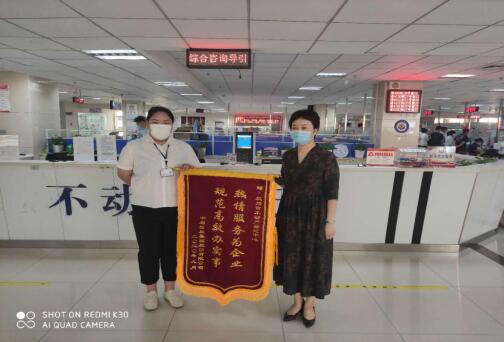 近日,中啟控股集團股份有限公司因位于膠州市產(chǎn)業(yè)新區(qū)中啟大廈項目辦證的事宜與膠州市不動產(chǎn)登記中心反復溝通,面對陌生業(yè)務,膠州市不動產(chǎn)登記中心的領(lǐng)導及工作人員認真、高效的工作態(tài)度,給我們企業(yè)幫了大忙,為企業(yè)解決了燃眉之急!在手續(xù)辦理完結(jié)后,由中啟集團青島宏鑫房地產(chǎn)營銷策劃有限公司宋燕經(jīng)理代表企業(yè)給膠州市不動產(chǎn)登記中心送去了錦旗,對工作人員高效、貼心的服務表示了感謝。