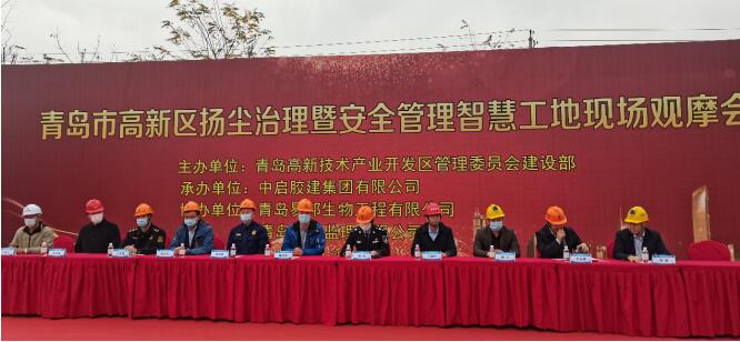 為進(jìn)一步增強(qiáng)企業(yè)的安全生產(chǎn)意識(shí),提高各項(xiàng)目揚(yáng)塵治理及消防管理水平,11月19日,由中啟膠建集團(tuán)有限公司承辦的青島市高新區(qū)揚(yáng)塵治理暨安全管理智慧工地現(xiàn)場(chǎng)觀摩會(huì)在中啟膠建集團(tuán)建筑七公司施工建設(shè)的易邦生物動(dòng)物流行病學(xué)檢測(cè)信息中心項(xiàng)目成功舉行。青島高新區(qū)管委副主任、工委委員蒲洪強(qiáng),生態(tài)環(huán)境局高新區(qū)分局大隊(duì)長(zhǎng)饒兵,青島高新技術(shù)產(chǎn)業(yè)開(kāi)發(fā)區(qū)消防救援大隊(duì)教導(dǎo)員張建軍,中啟膠建集團(tuán)副總經(jīng)理、建筑七公司經(jīng)理王法精等領(lǐng)導(dǎo)出席活動(dòng)并講話,觀摩會(huì)由中啟膠建集團(tuán)副總經(jīng)理、生產(chǎn)管理部經(jīng)理劉堯主持,青島高新區(qū)各部門(mén)相關(guān)負(fù)責(zé)人以及高新區(qū)各建設(shè)單位、監(jiān)理單位、施工單位等相關(guān)負(fù)責(zé)人參加活動(dòng)。