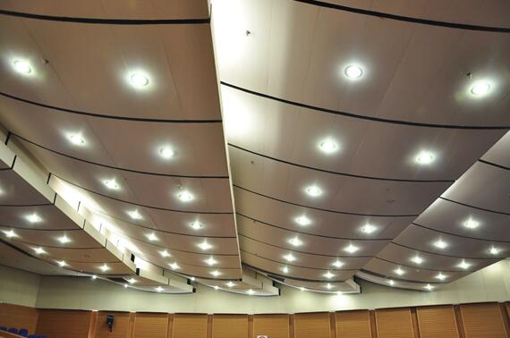 該工程弧形網(wǎng)架屋面,QC小組人員奮力攻關(guān),克服了定位難,節(jié)點復(fù)雜的困難,研發(fā)出了弧形網(wǎng)架高強(qiáng)玻纖巖棉保溫板施工工法,取得良好的質(zhì)量效果,該方法總結(jié)的成果獲得2015年度青島市QC成果二等獎。該工程采用的天然及人造塊材精加工與施工等多項新技術(shù),達(dá)到國內(nèi)領(lǐng)先水平。