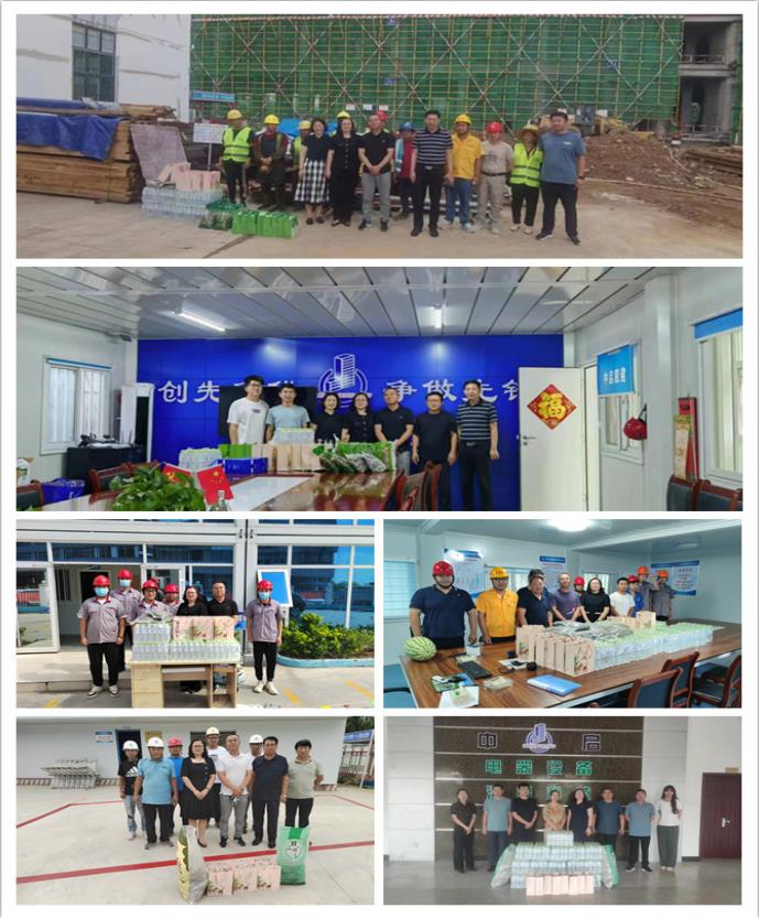 驕陽似火,酷暑難耐,為切實做好夏季防暑降溫工作,保障職工的生產(chǎn)安全、身心健康和各項目平穩(wěn)有序進展,自7月下旬起,由集團黨委副書記、董事副總裁張桂香、安全生產(chǎn)管理部經(jīng)理劉堯、工會主席劉博及安全生產(chǎn)管理部相關(guān)人員組成慰問組,頂著炎炎烈日到集團各基層單位和重點工程項目開展“夏送清涼”慰問活動,為始終奮戰(zhàn)在一線的“戰(zhàn)士”們,精心準備了實用的綠茶、綠豆、礦泉水等“清涼”物品,在炎熱的夏季送去陣陣“清風”,拉開了今年集團“夏送清涼”活動的序幕。