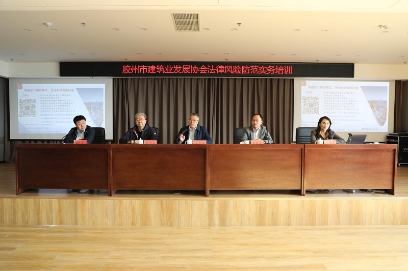 2023年3月14日上午,膠州市建筑業(yè)發(fā)展協(xié)會(huì)法律風(fēng)險(xiǎn)防范實(shí)務(wù)培訓(xùn)在澄韻中心順利舉行。膠州市住建局黨組成員、副局長宋世謙和協(xié)會(huì)會(huì)長郭道盛出席了本次培訓(xùn)并講話,參加培訓(xùn)的會(huì)員單位負(fù)責(zé)人、法務(wù)工作者120多人。培訓(xùn)由協(xié)會(huì)秘書長劉堯主持。