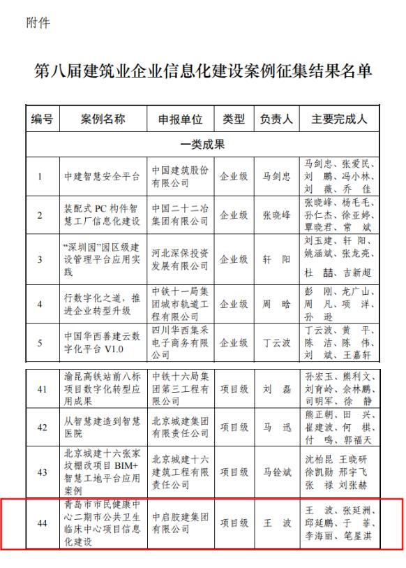 日前,中國建筑業(yè)協(xié)會(huì)工程技術(shù)與BIM應(yīng)用分會(huì)公布了第八屆建筑業(yè)企業(yè)信息化建設(shè)案例征集活動(dòng)結(jié)果,集團(tuán)承建的青島市市民健康中心二期市公共衛(wèi)生臨床中心項(xiàng)目成功入選項(xiàng)目級(jí)“一類成果”。