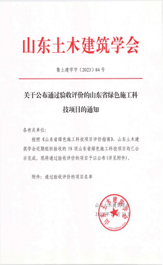 自項(xiàng)目立項(xiàng)以來(lái),集團(tuán)、分公司、項(xiàng)目部對(duì)該項(xiàng)目的綠色施工實(shí)施情況高度重視,確定了綠色施工實(shí)施方案并在項(xiàng)目上落實(shí);項(xiàng)目定期進(jìn)行自評(píng),及時(shí)對(duì)比分析各項(xiàng)指標(biāo)完成情況,并積極采取改進(jìn)措施。通過(guò)不懈努力,該項(xiàng)目于2022年通過(guò)了山東省綠色施工科技項(xiàng)目的中期評(píng)價(jià),并于今年11月順利通過(guò)了山東省綠色施工科技項(xiàng)目評(píng)價(jià)驗(yàn)收。通過(guò)評(píng)價(jià),項(xiàng)目達(dá)到預(yù)期制定的“五節(jié)一環(huán)?!蹦繕?biāo),綠色施工科技示范效果良好。