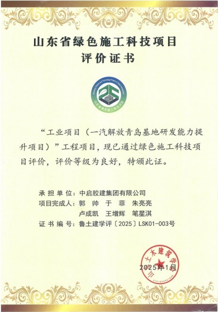 近日,山東土木建筑學(xué)會發(fā)布《關(guān)于公布通過驗收評價的山東省綠色施工科技項目的通知》,中啟膠建集團承建的工業(yè)項目(一汽解放青島基地研發(fā)能力提升項目)順利通過山東省綠色施工科技項目驗收評價。